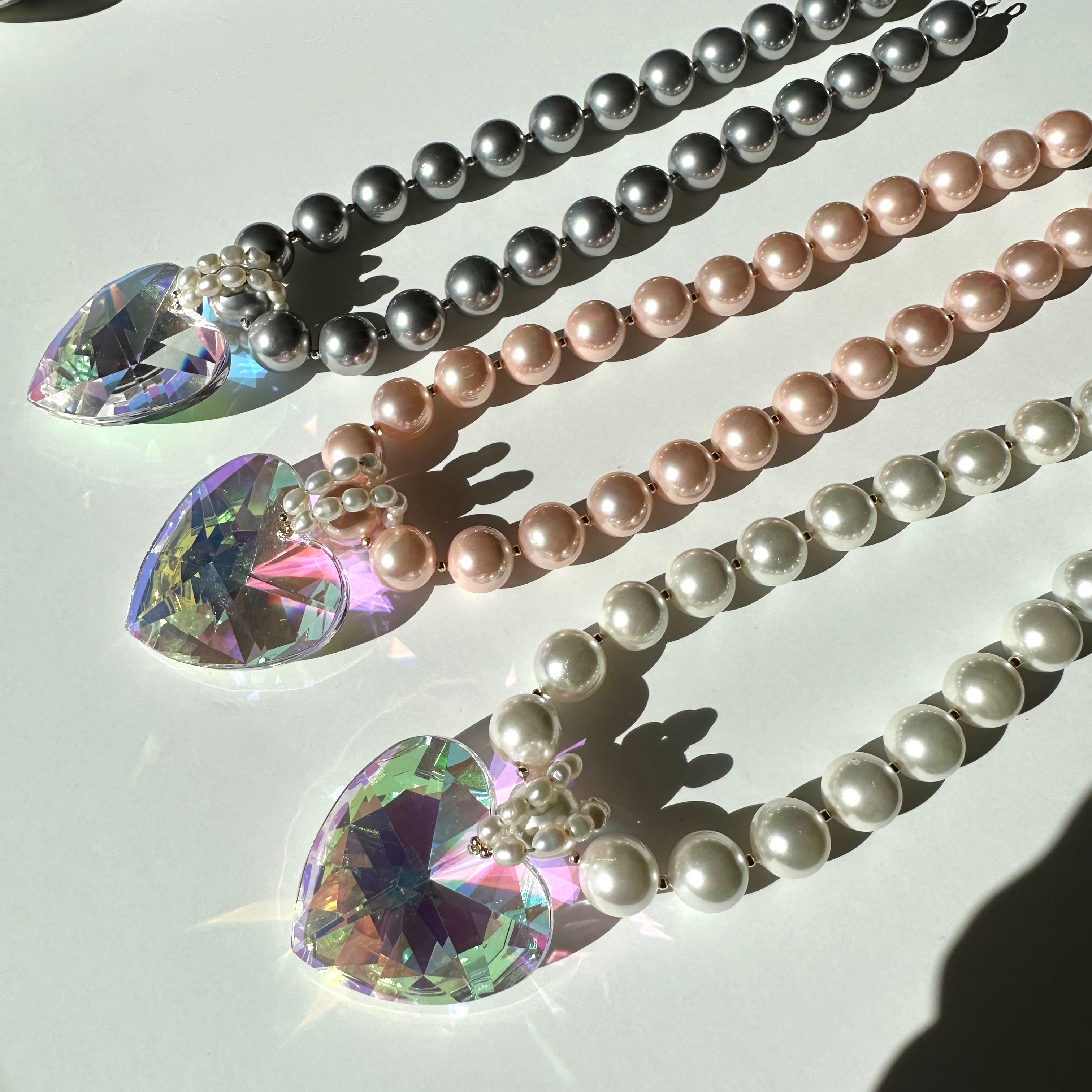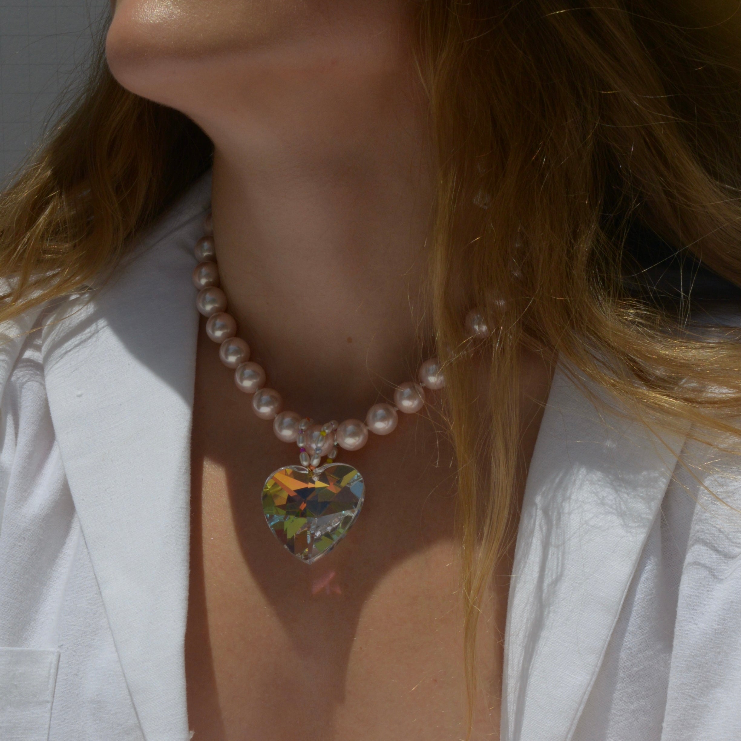 Living in a world of organized chaos, Maggie dove into this love of fashion and decided it was time to repurpose some of her vintage blazers. She had a variety of buttons laying around in her drawers, but only one specifically caught her attention... This button wasn't an ordinary scrap: it was a shimmering, crystal piece shaped as a heart. Instantly her mind started racing as curiosity and creativity took over and she found herself thinking, "Wow, this would look so cute on a strand of pearls." And thus, the Cole Necklace was born.