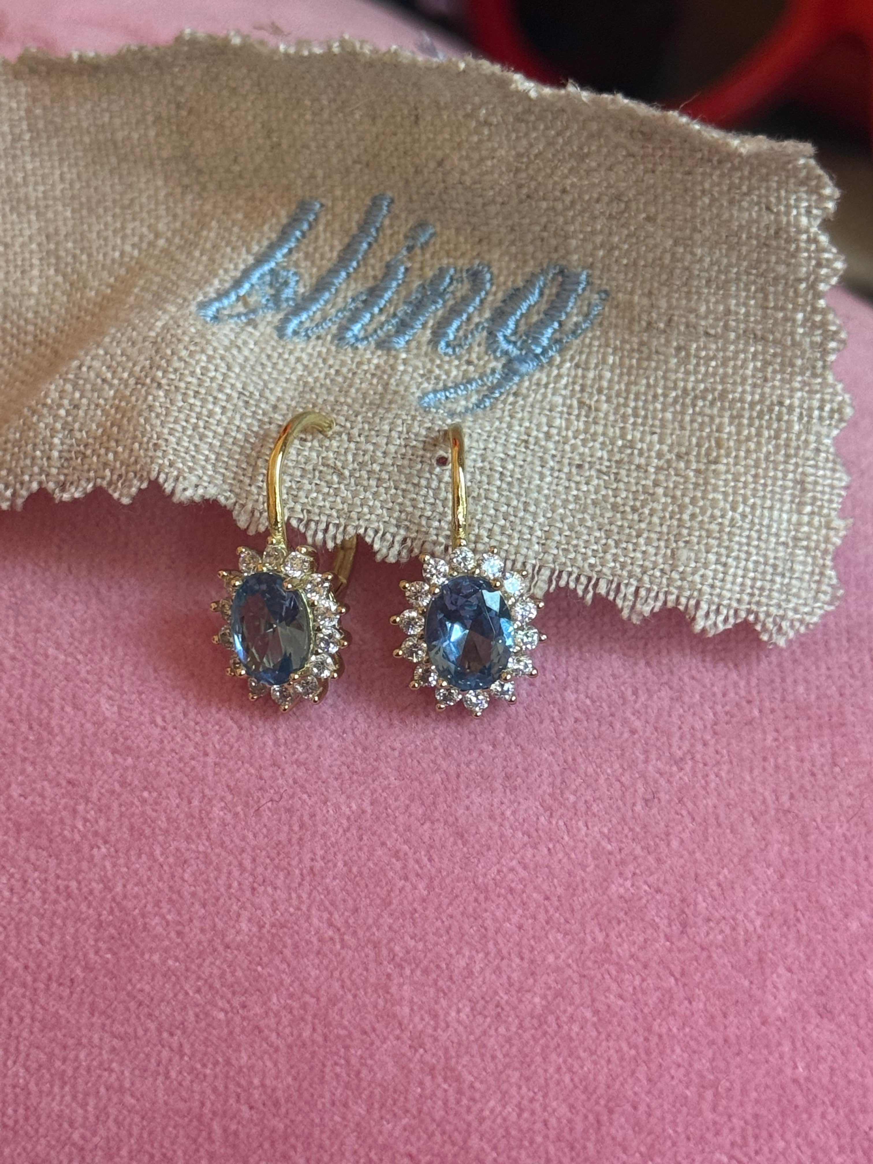 Meet your new go-to festive earrings: a light blue center stone framed in a halo of brilliant cubic zirconia, all set in gold-plated sterling silver and finished with a secure leverback clasp for that effortless, all-night comfort.