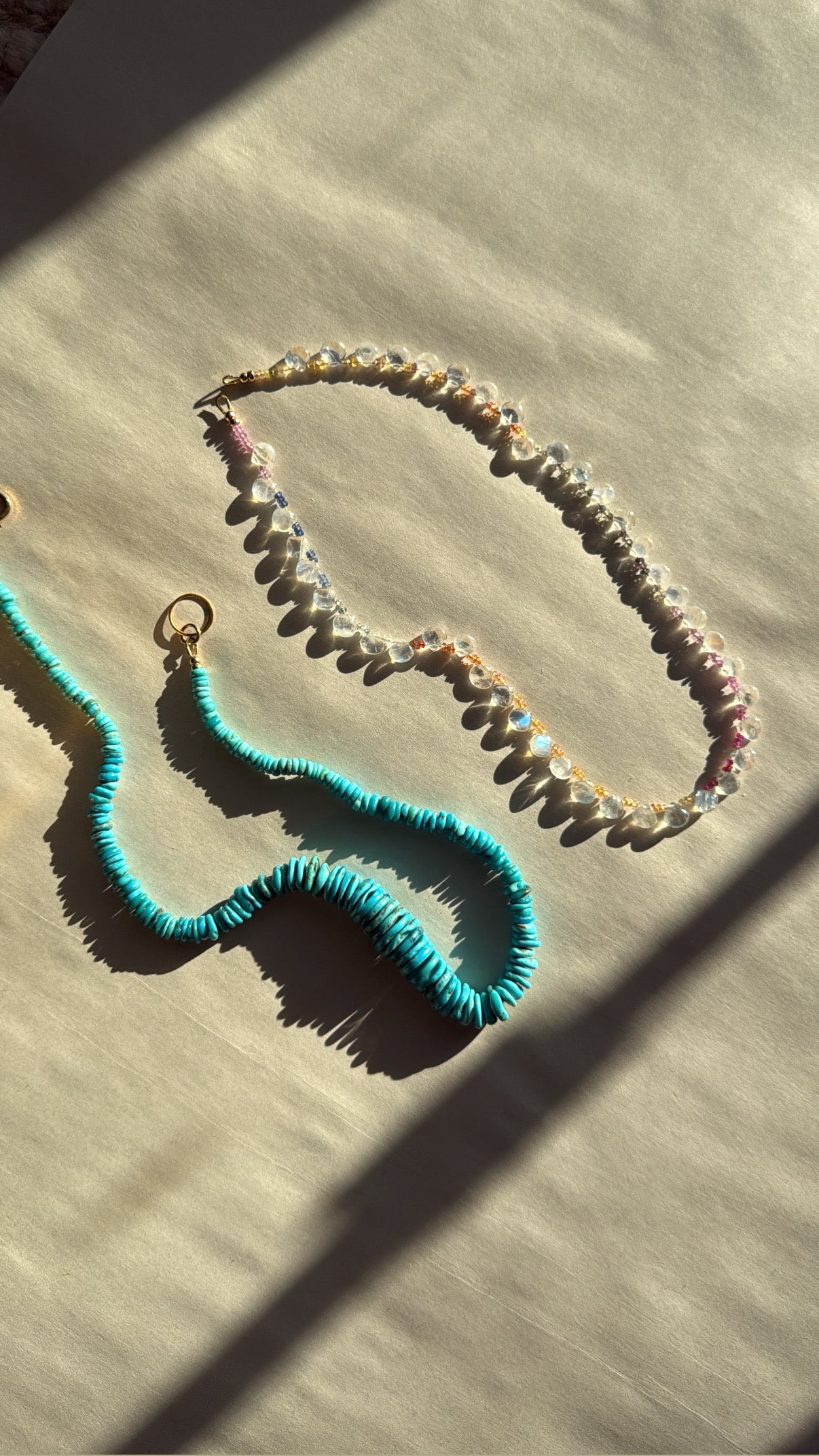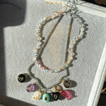 Get ready to sparkle with our opal and pink topaz necklace! A must-have for any jewelry collection, this stunning piece is perfect for October or august birthdays (or anyone who loves opals). This adds a captivating amount of dimension and texture to any necklace stack.