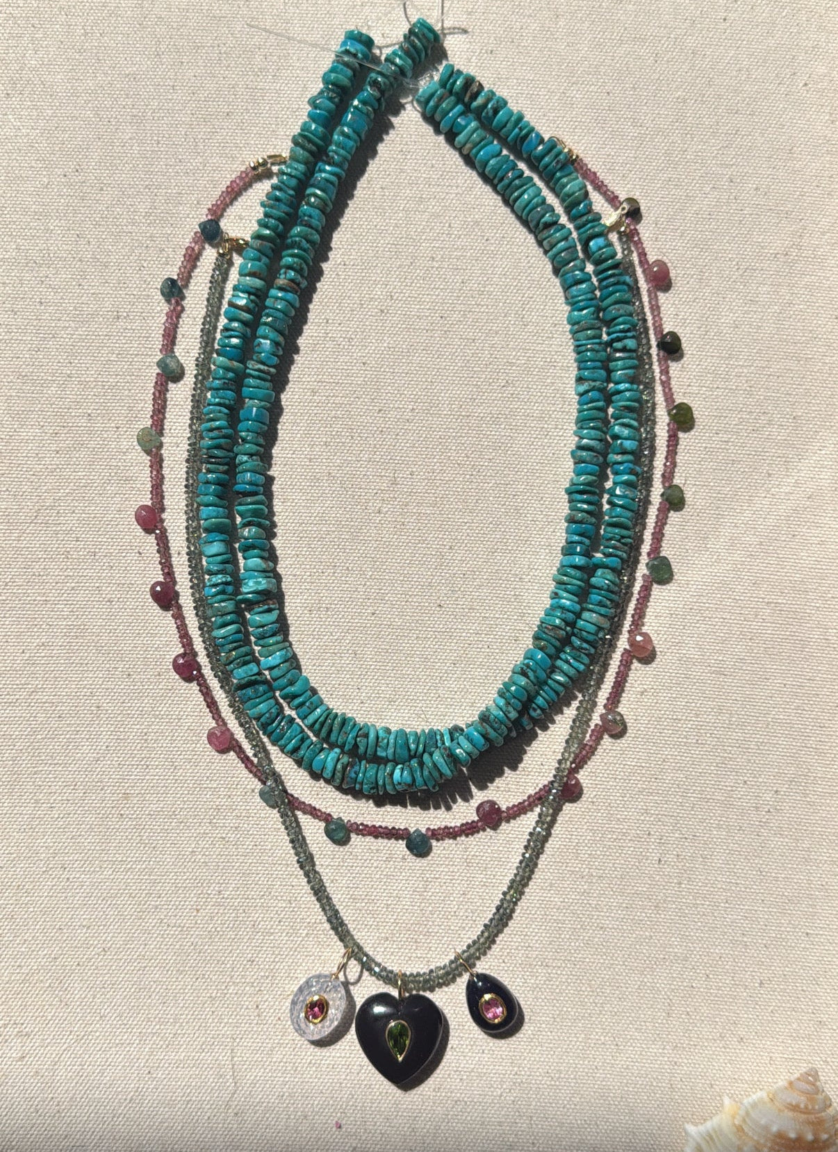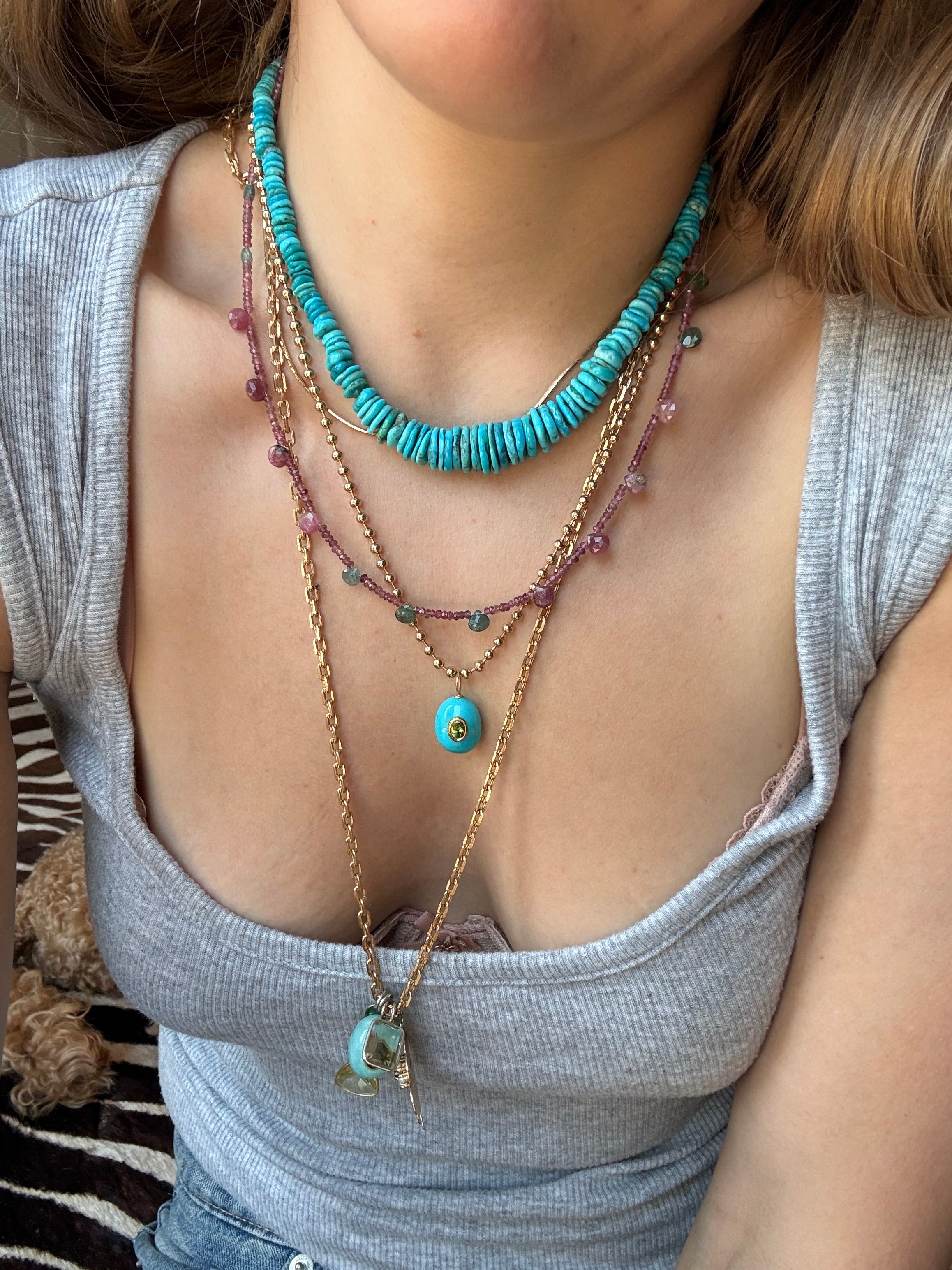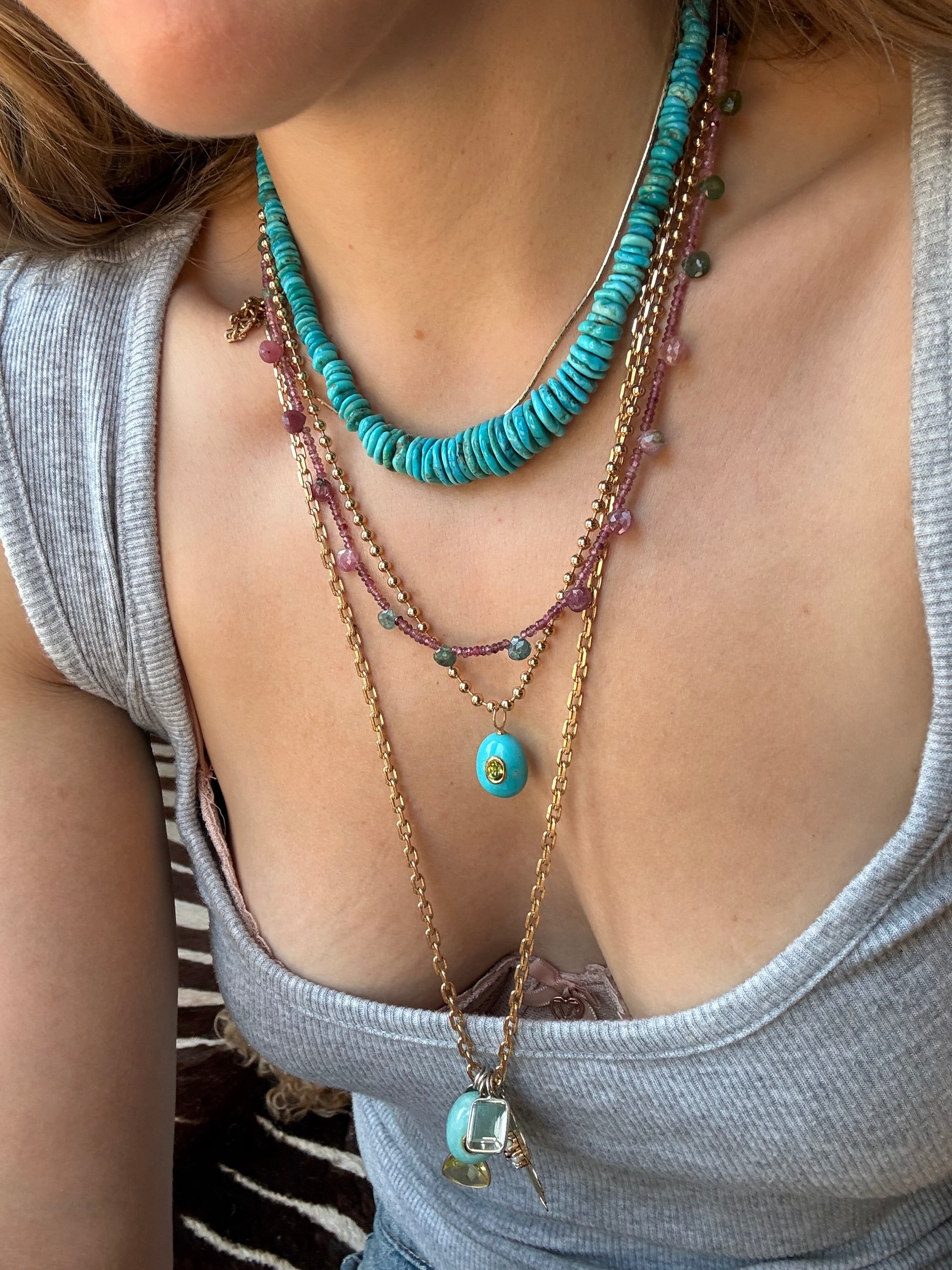 Get ready to sparkle with our tourmaline briolette necklace! A must-have for any jewelry collection, this stunning piece is perfect for October birthdays (tourmaline is October's nontraditional birthstone). This adds a captivating amount of dimension and texture to any necklace stack.