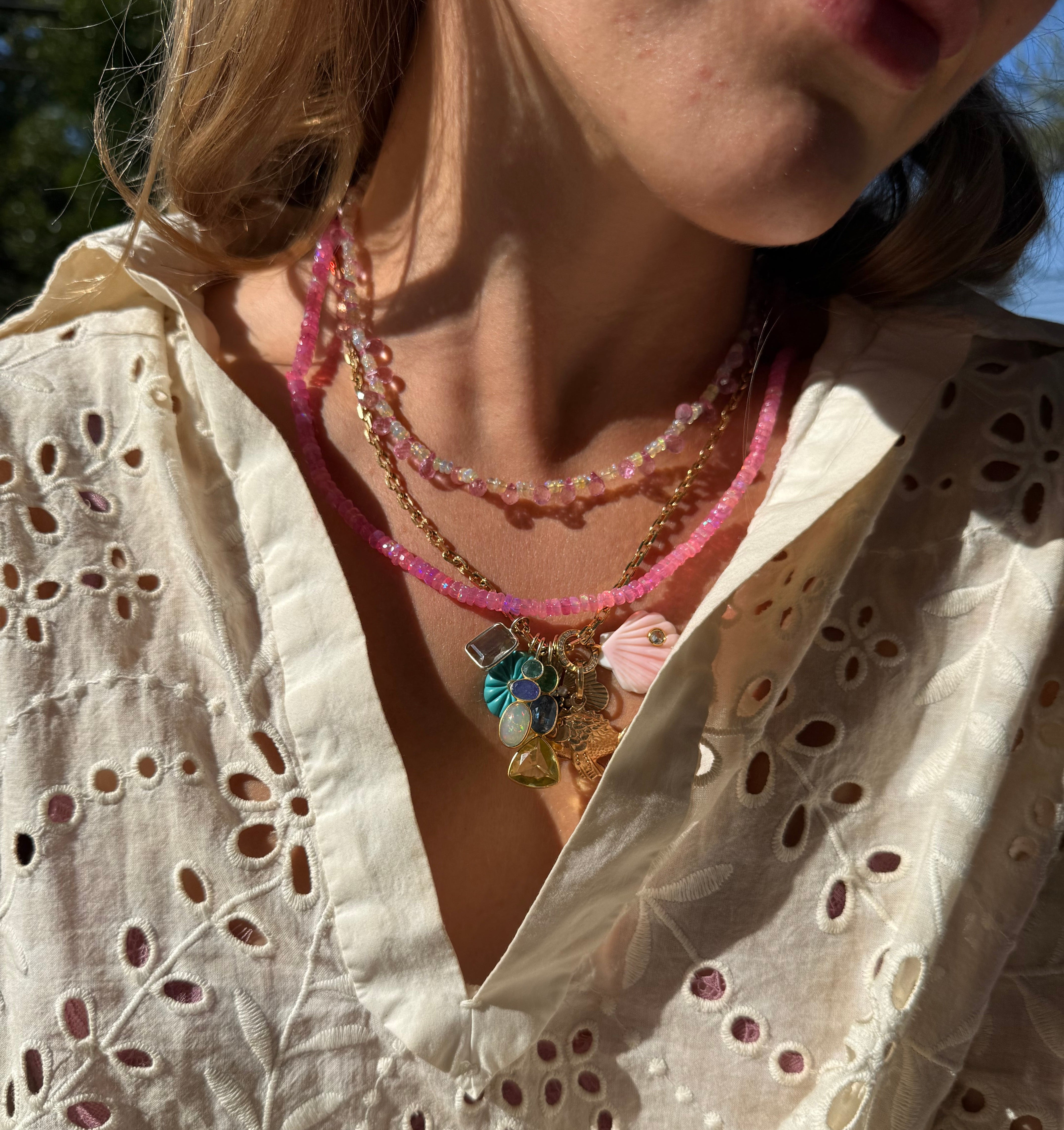 Get ready to sparkle with our Maggie pink opal necklace! A must-have for any jewelry collection, this stunning piece is perfect for October birthdays (or anyone who loves opals). Add a touch of elegance and charm to any outfit with this amazing stacking necklace.