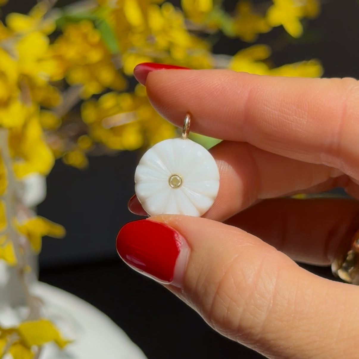 Mother of Pearl Carved Coin Charm