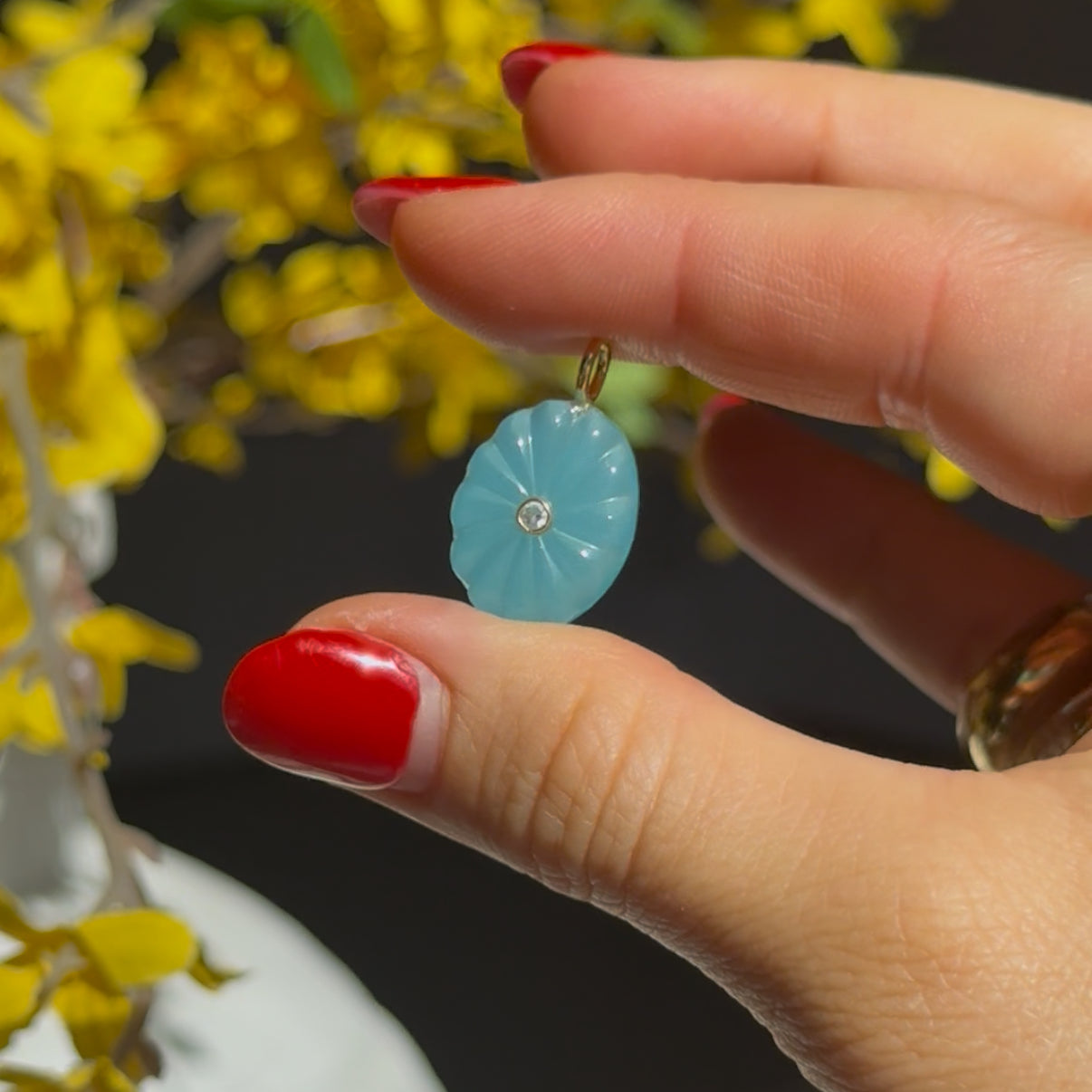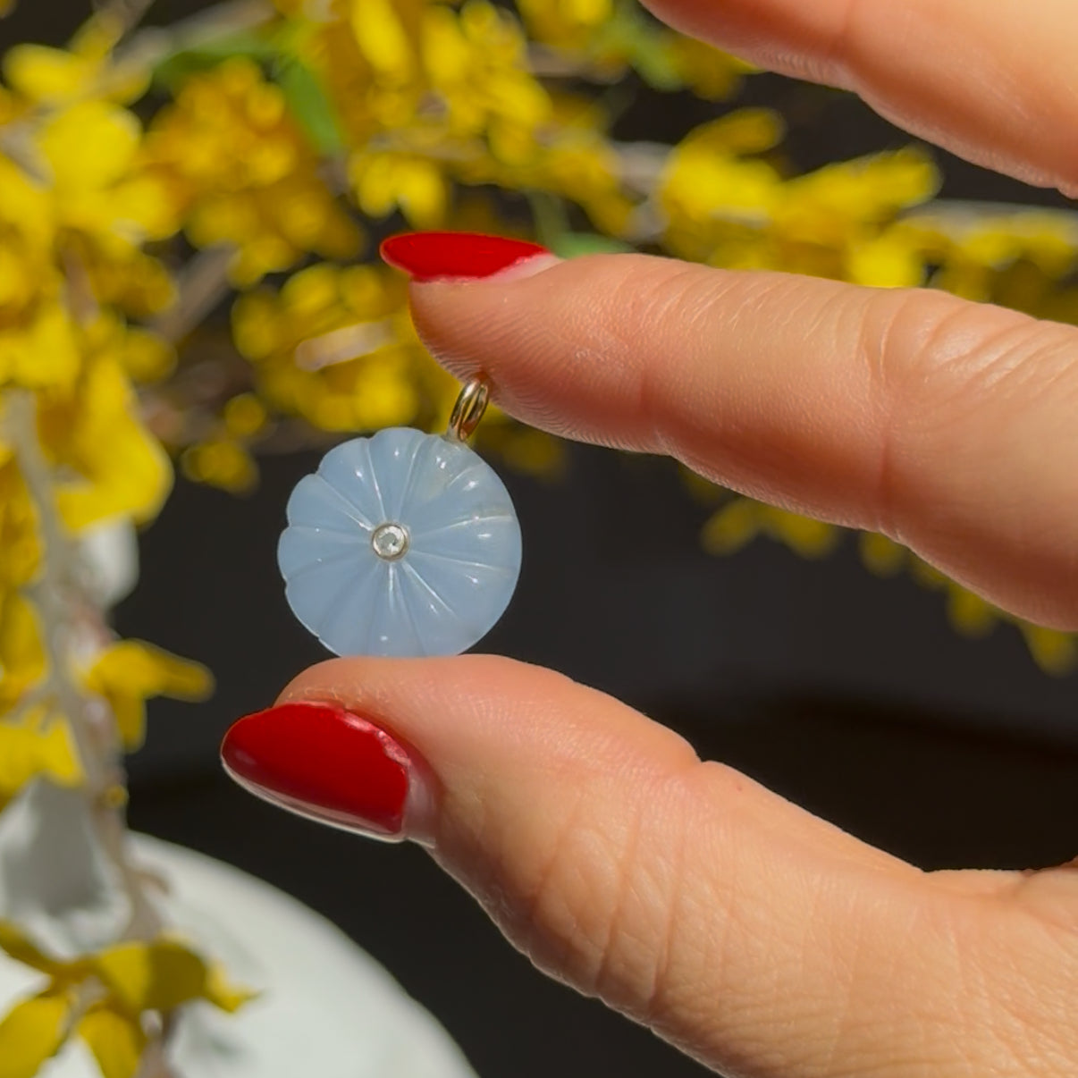 Blue Quartz Carved Coin Charm