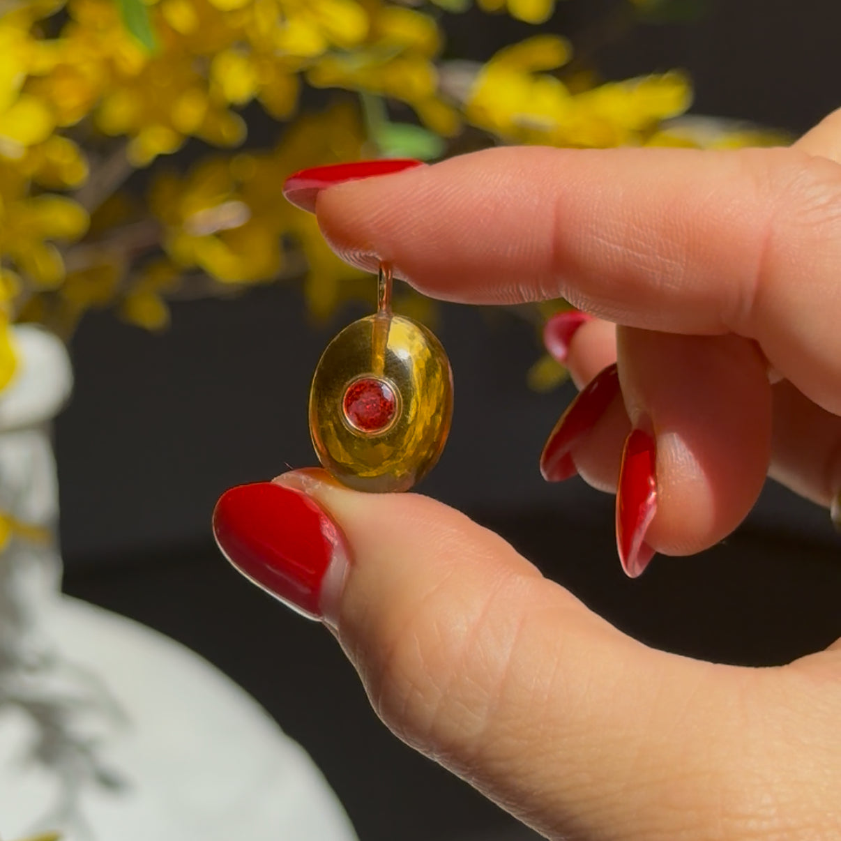 Bubble Pendant in Amber with Bezel