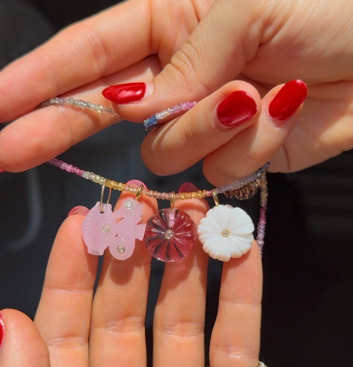 Designed to slide easily onto any of our dainty strands( think- rubies, sapphires, or even turquoise), they give you endless ways to mix, match, and make it your own. But please note: they’re very limited, and once they’re gone, they’re gone.
