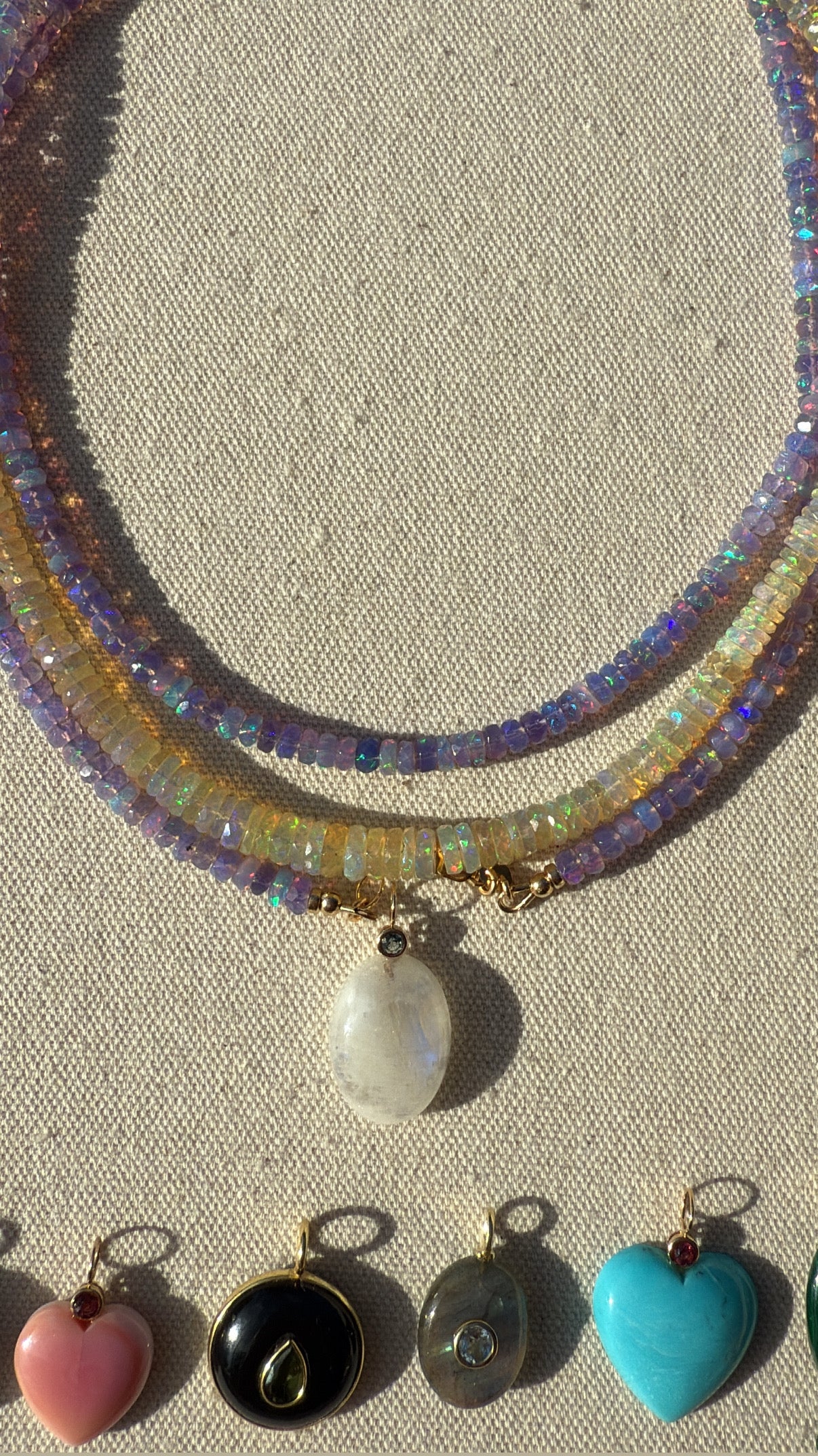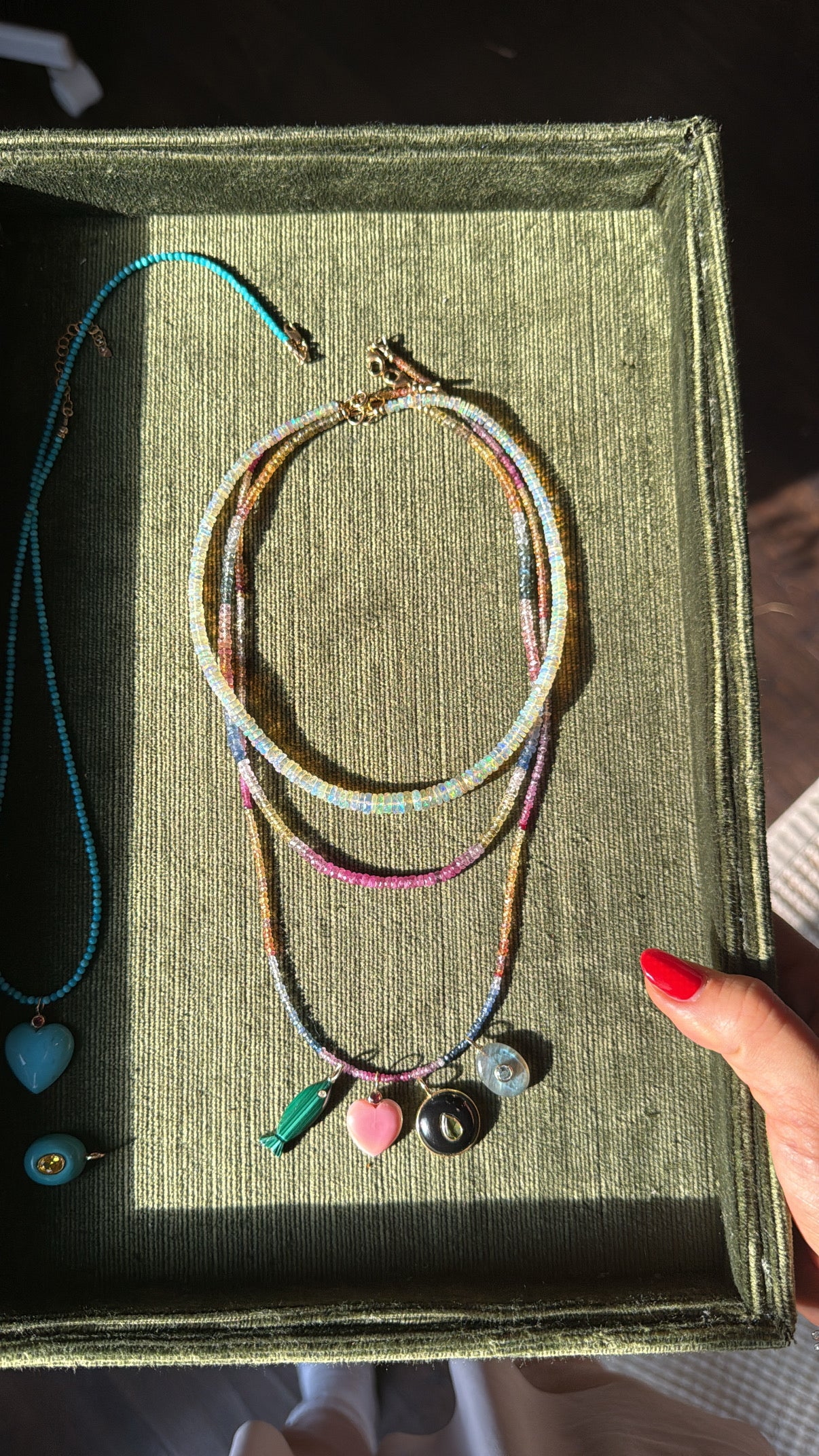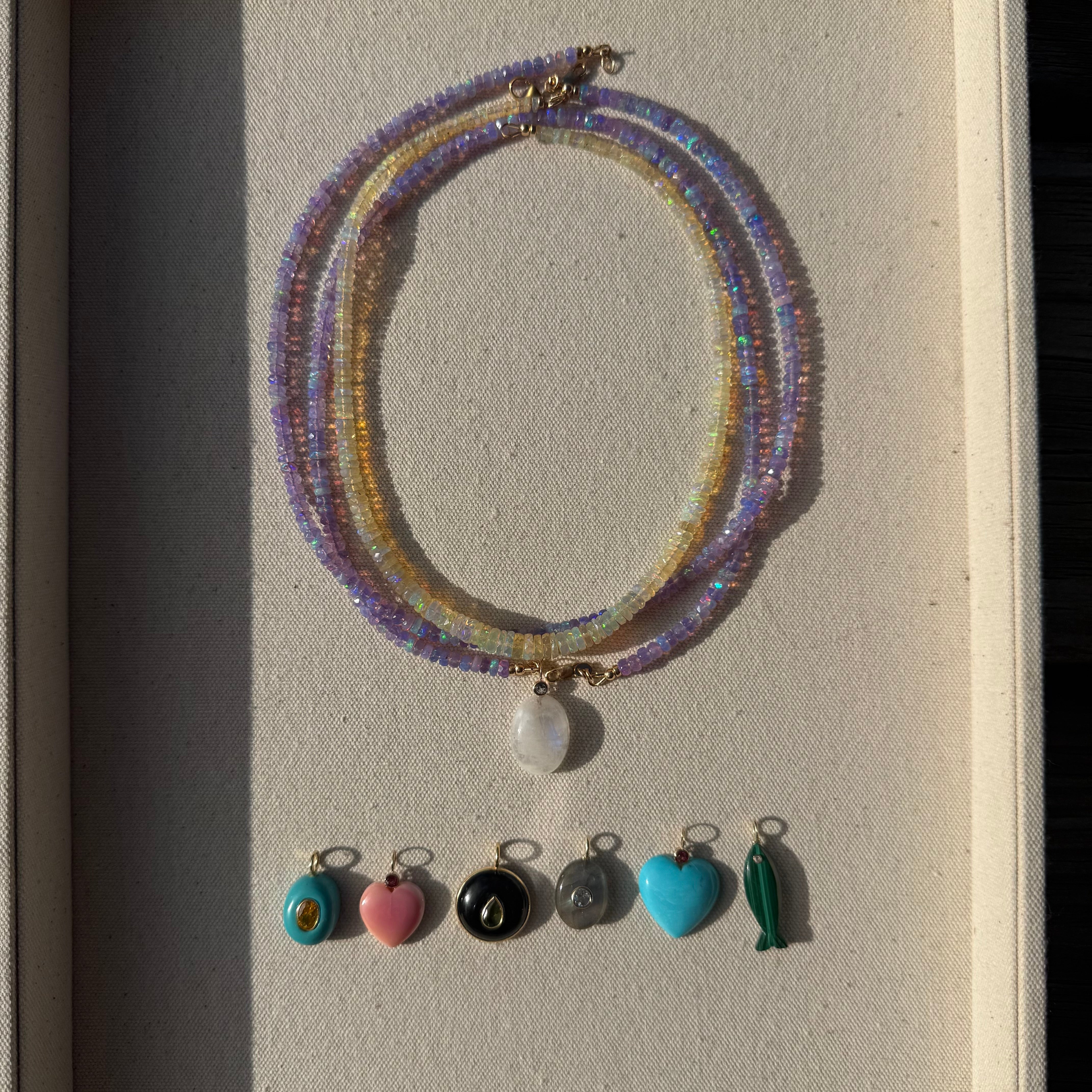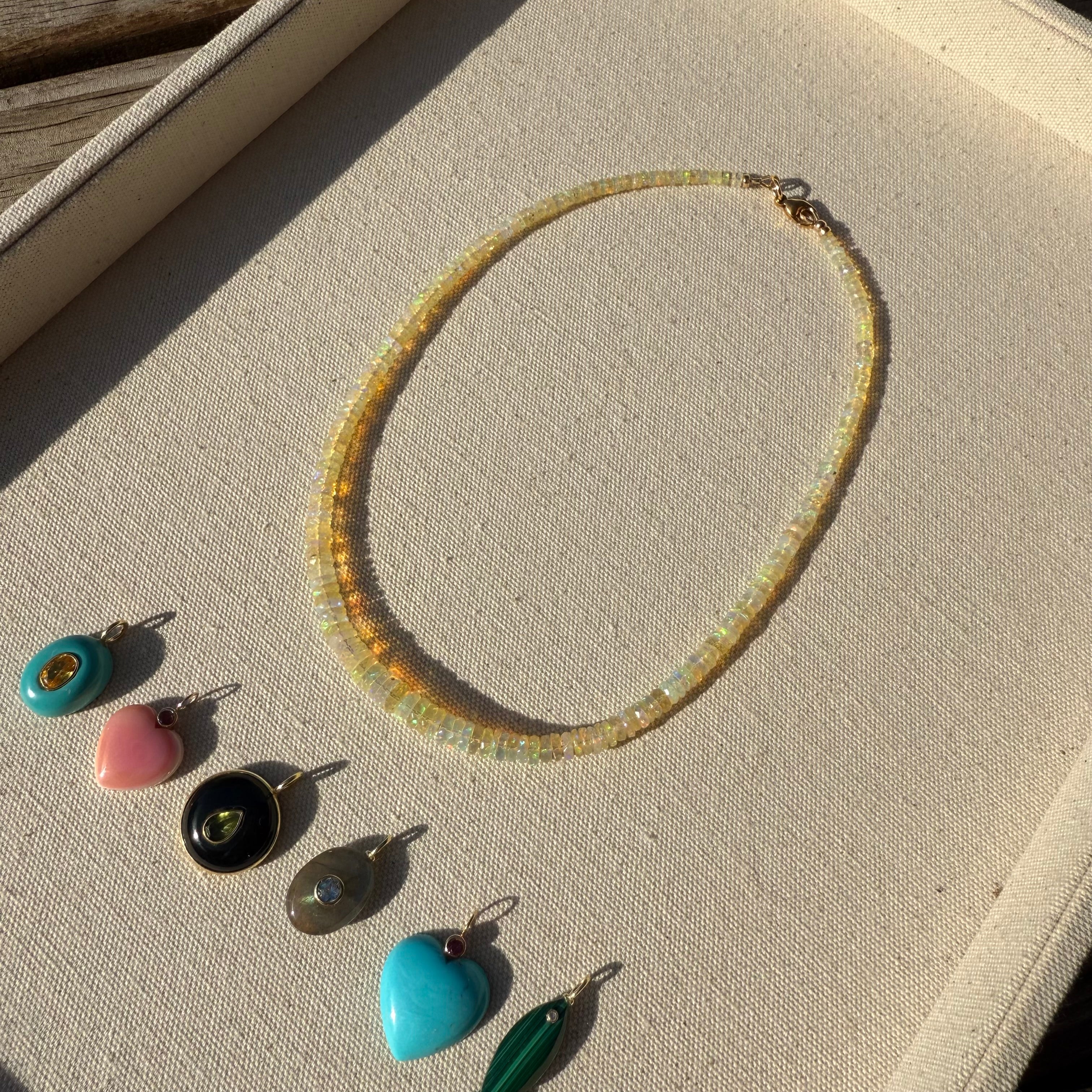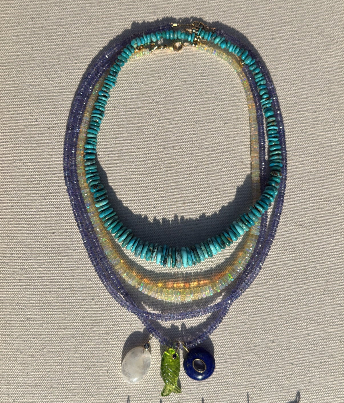 Hand‑strung, faceted opal catch every flicker of light, wrapping your neckline in vibrant blue glow. This piece was crafted for self‑expressers and day‑dreamers—those who paint life in bold strokes and aren’t afraid to shine.