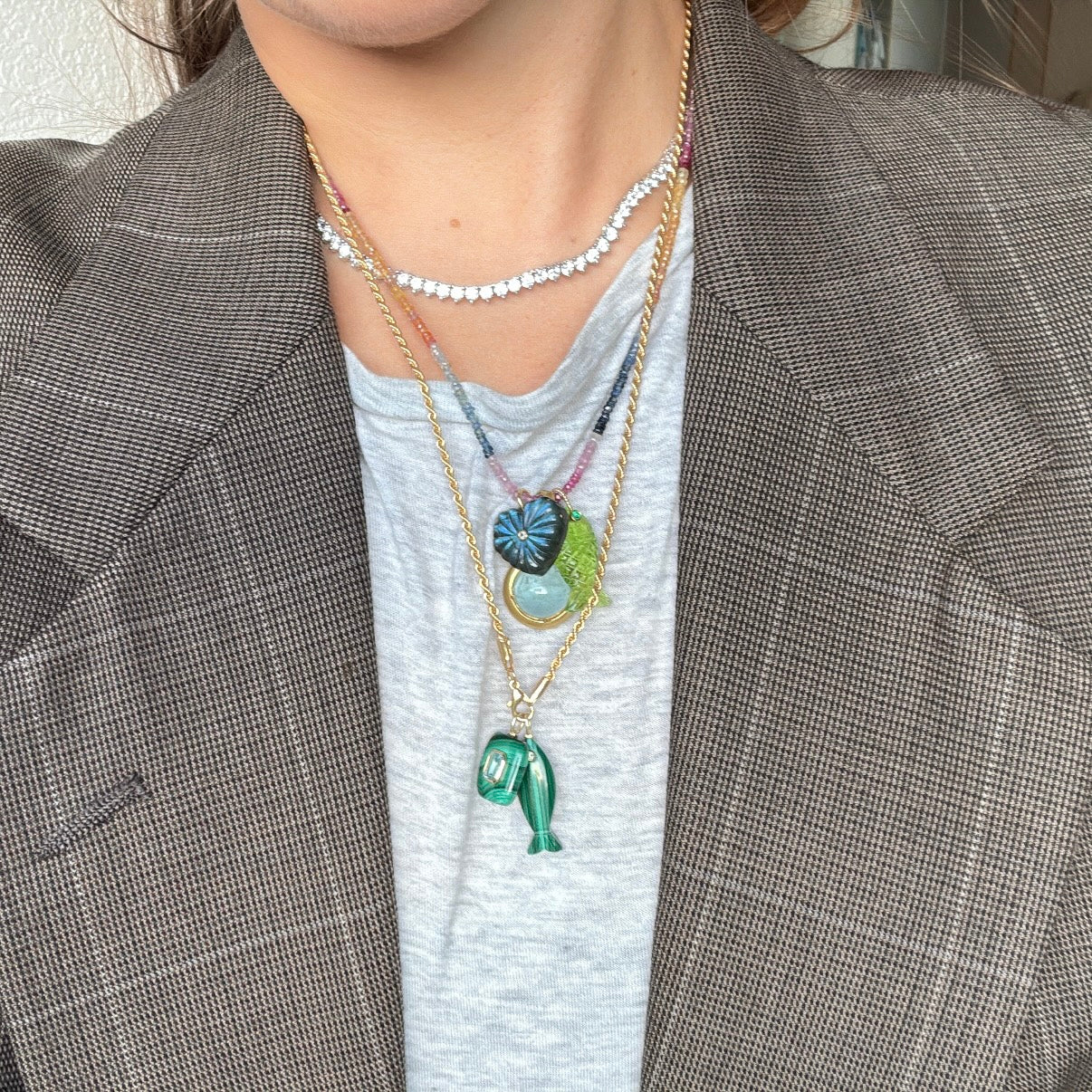 Designed to clip on the clasp of our chain necklaces. But please note: they’re very limited, and once they’re gone, they’re gone.