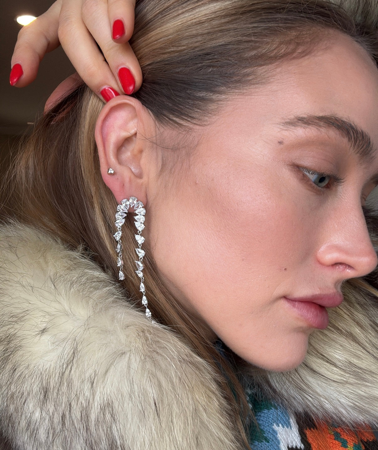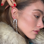 Handcrafted in sterling silver and set with brilliant, high-clarity cubic zirconia stones, each drop catches the light with that icy, champagne-sparkle effect you see in the photo. The cascading design feels elegant, dramatic, and glamorous without being heavy, making them perfect for holiday parties, winter weddings, or any moment you want to look unforgettable.